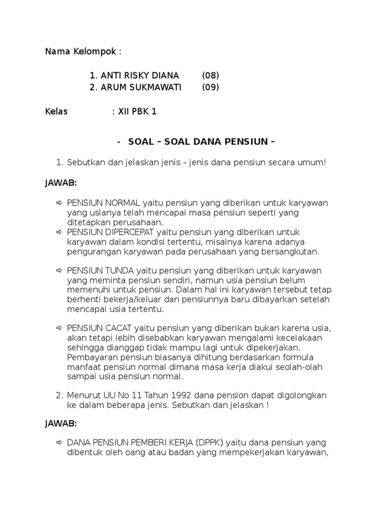 Contoh Soal Dana Pensiun Beserta Jawabannya Literatur
