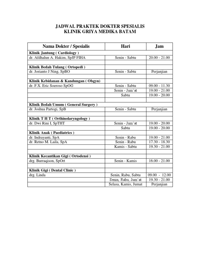 Fasilitas kesehatan yang bekerja sama dengan BPJS Kesehatan tersebut sebelumnya telah melewati tahapan seleksi dan kredensialing yang dilakukan bersama Dinas Kesehatan Kota Batam. RSIA Griya Medika adalah sebuah Rumah Sakit terletak di Batam Kepulauan Riau dan memiliki para ahli seperti.